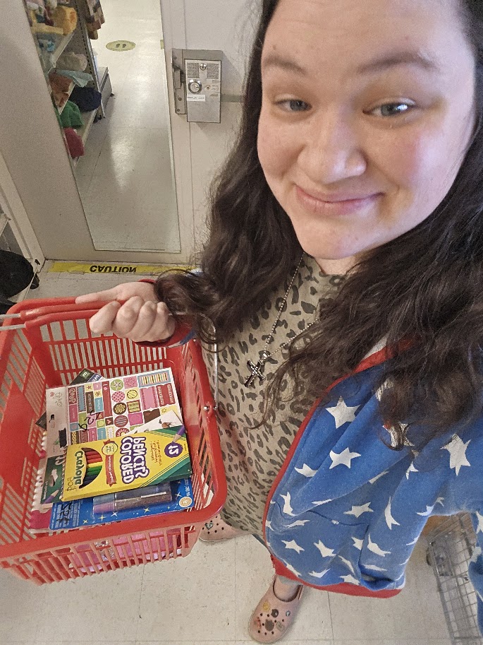 I did not have plans to go thrift shopping on this day but my friend was in town so I ended up meeting her here. I was in a weird mood on this day so I kind of just let myself loose and I just kind bought whatever I wanted to. I got a pretty good haul. If I had to choose a stand out item for this thrift shopping trip I would say that it is a pair of yellow heart shaped sun glasses. I liked that they were yellow I have a good amount of heart shaped sunglasses but I really liked that these were a bright and sunny yellow color. I was also really excited that I got a bunch of stickers including some horse stickers. Some other fun items I got on this day were two plush Peeps bunnies, a notebook with flowers on the cover, glitter glue, erasers shaped like crayons, a package of Crayola colored pencils, three shirts, some socks, and a bag of pens. I also got a Cheeta Girls CD because it reminded me of when I was a teenager. It was a fun thrift shopping trip with my friend.