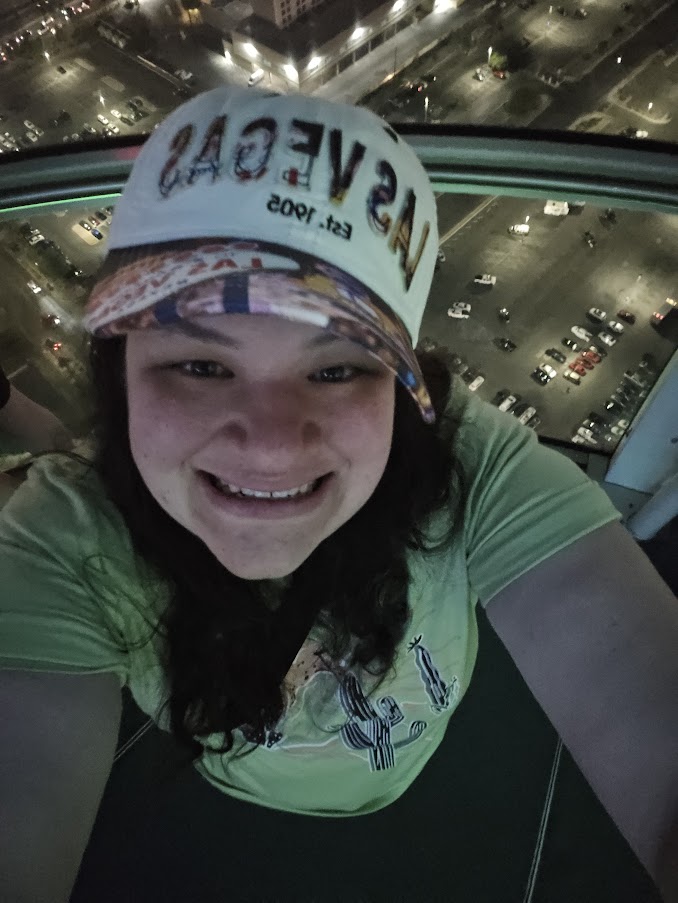June 12th – This was our last day of vacation before going home on the next day. I had two big things that I wanted to do before saying goodbye to Las Vegas. The first thing that we did on this day was to go get coffee. After that, we went to see The Seven Magic Mountains. This was one of the two things that I really wanted to do before going back home. I had seen pictures of this art exhibit, and I loved how colorful it was. I really wanted to go here. It is a little bit of a drive from the Las Vegas strip, but it was so worth it, in my opinion. I got some great pictures here. I loved seeing the huge and very colorful rock towers. This unique art exhibit felt like a once in a life time experience. After seeing the beautiful seven magic mountains, we went back to the Las Vegas strip. Before doing the 2nd big thing I had planned that day, we went to a huge Walgreens. This store had one of the best souvenir sections that I have ever seen. I got a plush monkey, a picture frame, and some key chains. After buying some fun souvenirs. We went to one of my favorite places and that place is the rainforest cafe. There used to be more of these delightful cafes around, but sadly, they are not as common as they used to be. I was super excited to get to go to a rainforest cafe because I had not been in a long time. I had a great time at the rainforest cafe. It is a fun place to take pictures and they also have a good store there. I got some stickers and a baseball at the store. Even after we did all of that, we were not done with our adventures for the day yet. That night we went on a bus tour. The top of a bus is a great place to see Las Vegas. I enjoyed this tour. The top of the bus was also a great place to get pictures of Las Vegas. Later that night, I went out one more time. I bought a flamingo pen, and I went to the candy store one more time before going back to the hotel to get some sleep before our early flight the next day.
